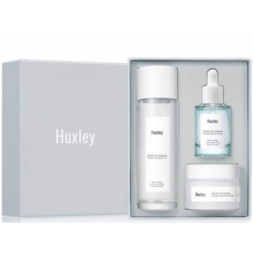 The first product in the Huxley Hydration Trio is a lightweight essence that penetrates deeply into the skin, providing an immediate boost of hydration. Following this, the moisturizer offers a rich yet non-greasy texture that locks in moisture throughout the day. Finally, the trio is complemented by a soothing cream that not only hydrates but also calms and revitalizes the skin, making it suitable for all skin types, including sensitive skin. Together, these products create a comprehensive hydration routine that addresses various skin concerns, promoting a balanced and youthful appearance.